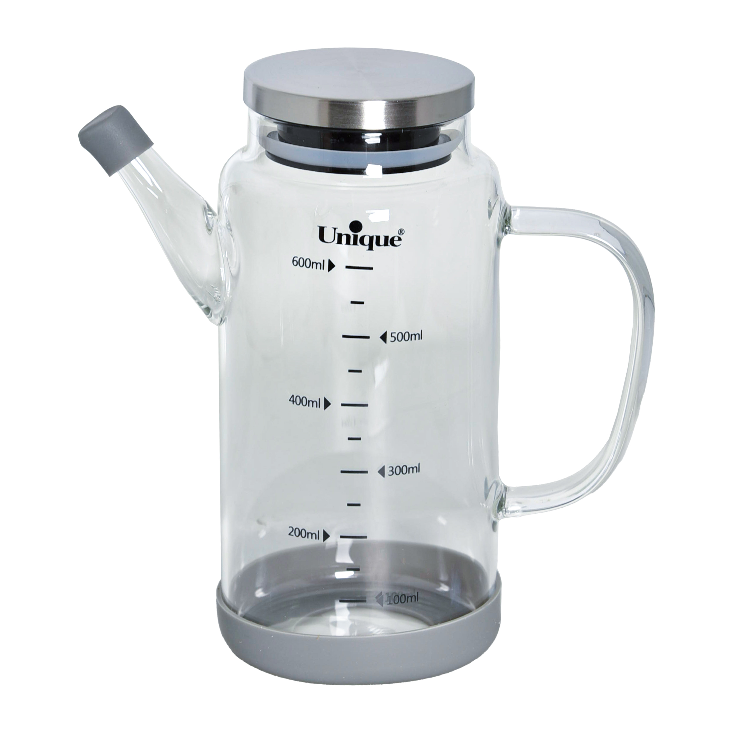 روغن ریز های دارای درجه به ما کمک میکنند تا در زمانی که در آشپزی نیاز است که مقدار خاصی از روغن استفاده کنیم بتوانیم آن را بسنجیم. روغن ریز یونیک از جنس پیرکس و درب آن از جنس استیل می باشد و مناسب برای استفاده به عنوان روغن ریز ،آبلیمو و سرکه و… است.حجم آن 600 میلی لیتر ( 0.6 لیتر ) می باشد.