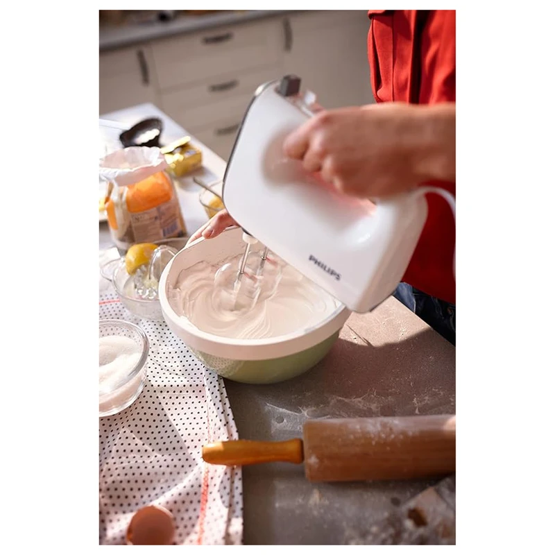 سَریهای مختلف همزن بهصورت جفتی کار میکنند و هر چیزی را مخلوط کرده و هم میزنند. ظرفیت کاسهی همراه همزن فیلیپس مدل HR3745 سه لیتر است و میتواند برای تهیهی وعدهی غذا یا شیرینی و کیک متوسط تا بزرگ استفاده شود. برای همزدن مواد مختلف میتوان دستگاه را در پنج سرعت متفاوت تنظیم کرد؛
