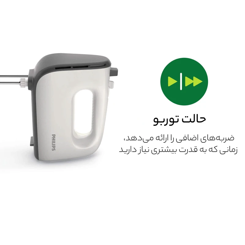 همچنین با قراردادن همزن در حالت توربو، سرعت آن افزایش یافته و در زمان کم مواد را با یکدیگر مخلوط میکند؛ ولی نکتهی متمایز این همزن اینجاست که میتواند با یک دکمه از پایهی ثابت جدا و بهصورت دستی استفاده شود. به این ترتیب محدودیت استفاده از ظرف همراه حذف شده و میتوان در ظروف مختلف عمل همزدن را انجام داد.