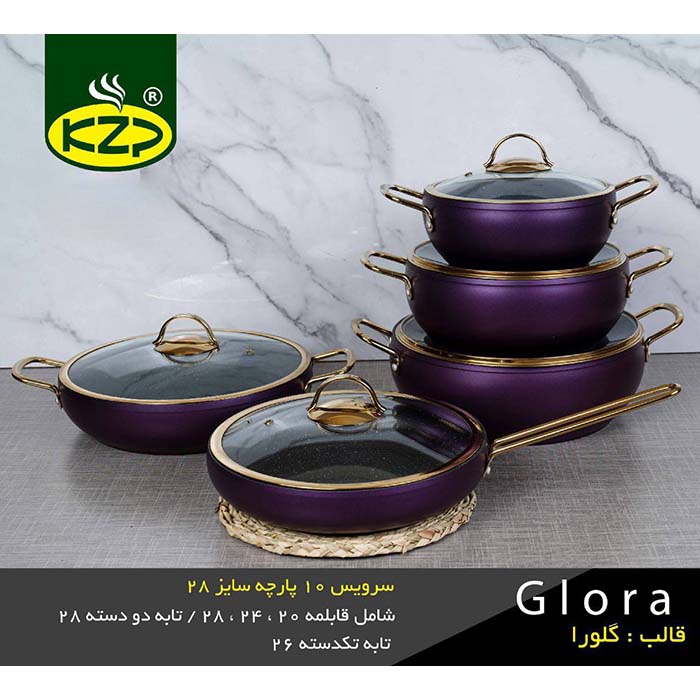 بررسی سرویس قابلمه 10 پارچه KZP کی.زد.پی مدل گلورا