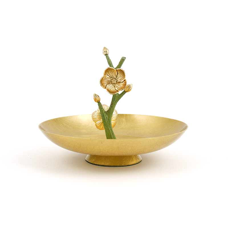 • جنس شاخه و گل: فلز برنج با پتینه‌کاری سبز و آبکاری طلایی