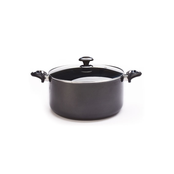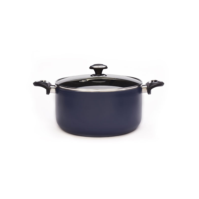 قابلمه سایز 16 گرانیتا سرمه ای با درب شیشه ای زرساب دارای پوشش گرانیتی بوده که در میان ظروف دیگر بادوام تر، سخت تر و به مراتب سالم تر می باشد.