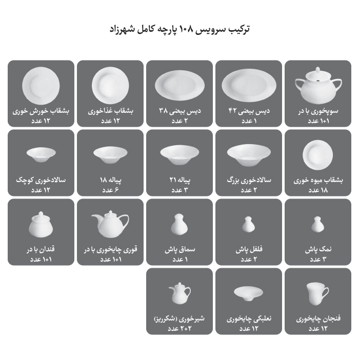 شرح محصول سرویس چینی 108 پارچه والندورفر مدل سلطانیه